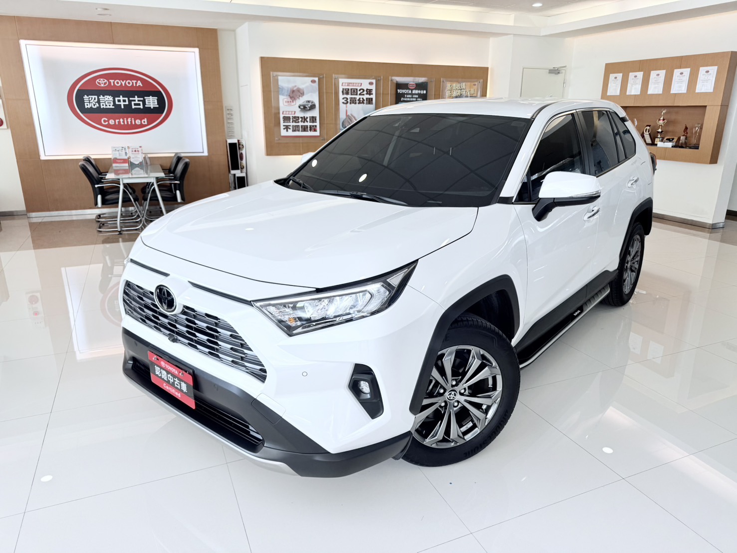日本原裝進口最新版第五代RAV 4,旗艦版/配備有 電動尾門 TSS、7SRS 氣囊、胎壓偵測、免鑰匙啟動i key、TRC、VSC,白色旗艦原廠精裝特仕版,CP值超高! 超低里程近全新車,可搭配低利貸款、輕鬆月付,提供2年或3萬公里中古車保固。